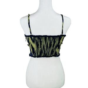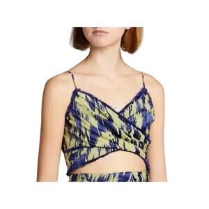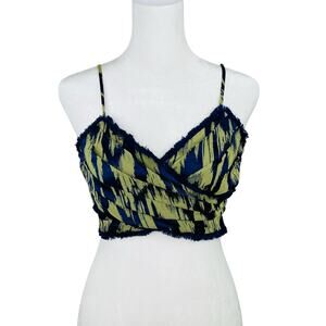 Cinq a Sept Blue Green Ikat Smocked Pleated Sleeveless Wrap Front Crop Top XS