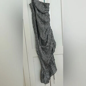 Look stunning and chic this summer in the Christel Dress. With a one-shoulder design featuring a ruffled asymmetrical hem, side rouching and playful navy and white pattern, you'll make a statement at any event. Look your best and surprise them with your style!