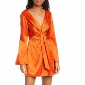 Cinq a Sept Caelan Burnt Orange Long Sleeve Silk Mini Dress Size 4
