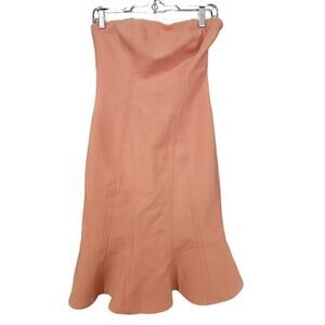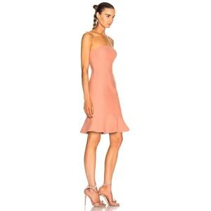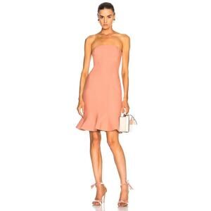 Cinq a Sept Calvina Dress in Bloom. Size 4. Features strapless with non-slip silicone, hidden side zip closure, ruffled hem, front seam detailing, and mini length. Style ZD4151062Z. 54% Polyester, 39% Viscose, 7% Elastane. Lining: 100% Polyester. Excellent pre-owned condition, no flaws.