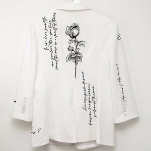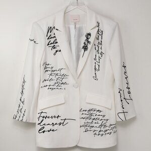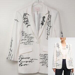 Cinq a Sept Cheyenne Blazer Embroidered Script Mon Amour Black Ivory Size 10