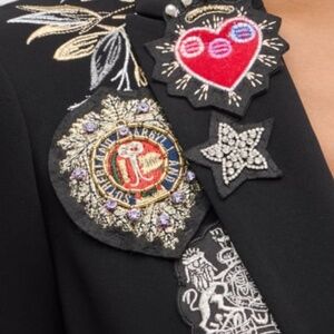 Rare jacket. Size 8. Excellent condition. Worn once. Inspired by the time of day when office desks are empty and the sun has all but vanished, Cinq à Sept creates versatile staples that effortlessly go from day to night. Founded in 2016, Cinq à Sept is known for its sophistication and ease—offering a youthful, daring take on fashion for times when anything is possible. Spread collar. It is at my boutique and I will take actual pictures tomorrow.