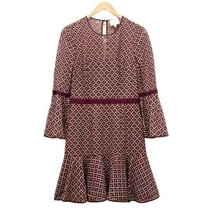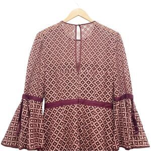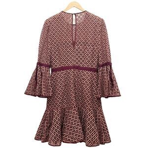 Cinq a Sept Cosette Dress Bell Sleeve Mulberry Pink Lace Overlay Babydoll Size 8