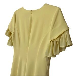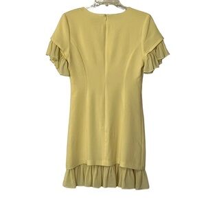 Cinq a Sept Crew Neck Layered Chiffon Ruffled Mini Dress Yellow 10