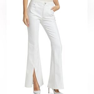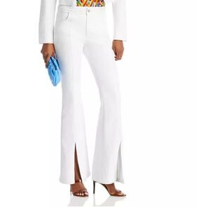Cinq a Sept Ferna Braided White Jeans Women 10 High Waist Flared Split Hem $325