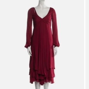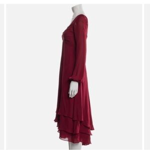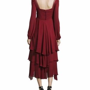 Cinq a’ Sept Fira Tiered Silk Dress Flowy Bishop Sleeves in Pomegranate Red