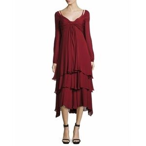 Cinq a’ Sept Fira Tiered Silk Midi Dress in Pomegranate Red