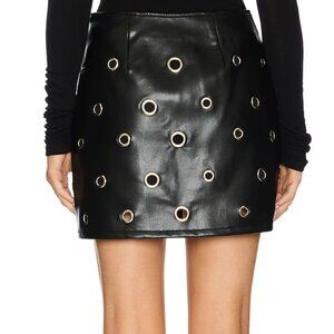 Cinq a Sept Harriet Mini Skirt in Black Vegan Leather Shiny Grommet 4 Small
