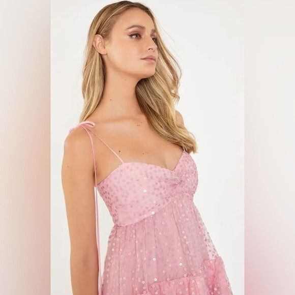 Cinq a Sept Jae Dress Pink Quartz Sequin Ruffle Party Prom size 8