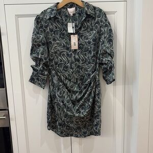 Cinq a Sept Janine Green and Navy Wrap Dress—GORGEOUS!! New with Tags—Size 4