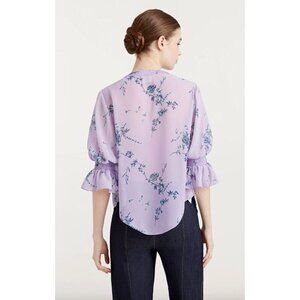 Cinq a Sept Jennings Floral Print Blouse Lilac Wine Multi Womens Size XS
