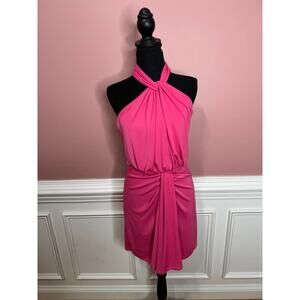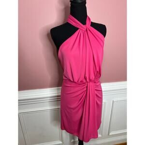 Cinq a Sept Kaily Gathered Mini Dress in Pink Dahlia Size 6 Ruched Stretch