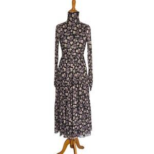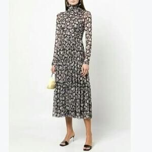 Cinq a Sept Kourt Midi Dress Printed Victorian High Neck Black Women 0 FLAWED