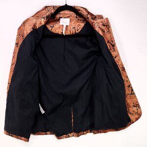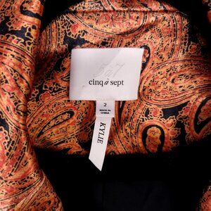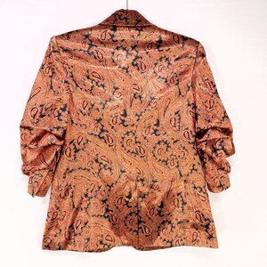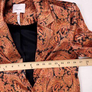 Cinq a Sept Kylie Blazer Size 2 Satin Paisley Ruched Gathered Sleeves Pockets