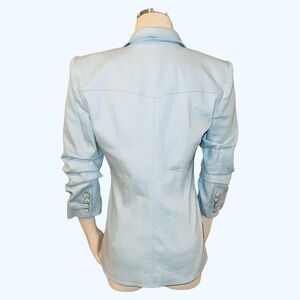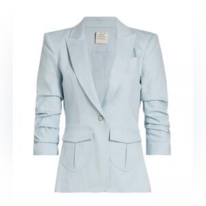 Cinq a Sept Louisa Peak Stretch Fitted Ruched Sleeve Denim Blazer Size 4 NEW