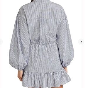 You'll charm in this striped shirtdress framed by dropped shoulders and bishop sleeves and finished with a flouncy ruffle at the mini-length hem. Style Name: Cinq A Sept Kelly Long Sleeve Mini Shirtdress. Style Number: 6201296.