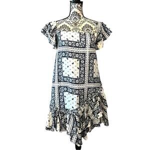Cinq a Sept NWT Minella OTS Paisley Mini Ruffle Party Dress size 4 Navy Ivory