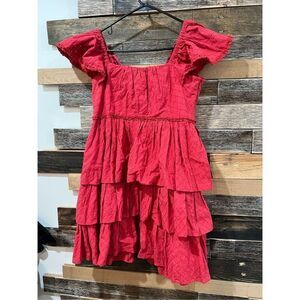 Cinq a Sept NWT Marcia Tiered Mini Dress Red Ruffle Eyelet Laceup Cotton Sz 4