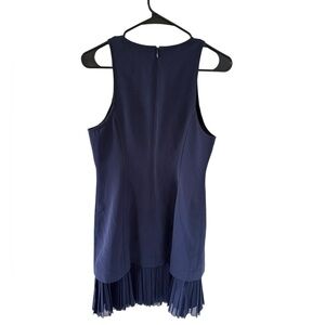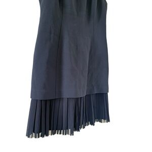 Navy crepe (69% Triacetate, 31% Polyester). Sleeveless. Crew neckline. Hourglass. Hidden back zipper with hook-and-eye closure. Fully lined. 34” from shoulder to hemline. Imported.