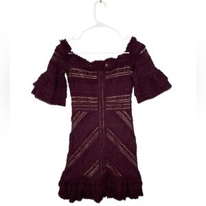 Cinq a Sept Naya Off-The-Shoulder Bell-Sleeve Mini Dress in Mulberry Maroon Size 4.