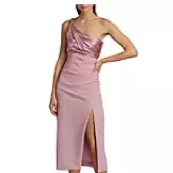 Cinq a Sept : One shoulder Satin and Crepe Dress : Pink Sand : Size 8 (US)
