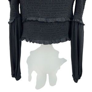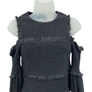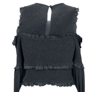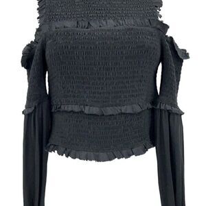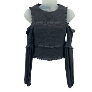 Cinq a Sept Pascal Top Women XS Black Silk Cold Shoulder Crop Stretchy Long