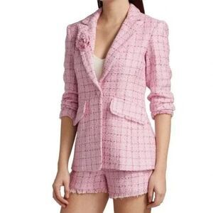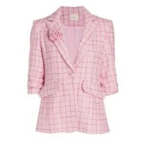 Cinq a Sept Pricilla Size 8 Pink Tweed Blazer Jacket Half-Length Rolled Sleeves