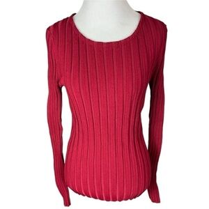 Cinq a Sept Pullover Ribbed Sweater Top in Pomegranate Ruby Red Size Medium