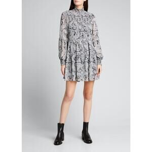 CINQ A SEPT Rika Paisley Balloon Sleeve Tiered Mini Dress Size 10
