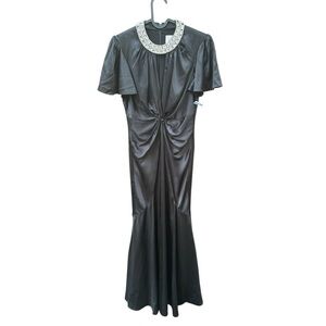 Look and feel your best in the Sharma Dress. This classic black evening dress features exquisite embellishments and a gorgeous cut out detail. Its silky fabric will have you feeling like royalty as you confidently grace any formal event. Look amazing and make a lasting impression with the Sharma Dress.