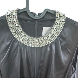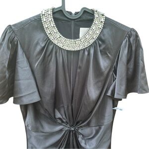 Cinq a Sept Sharma Midi Dress Silk Satin Twist Front Embellished Black