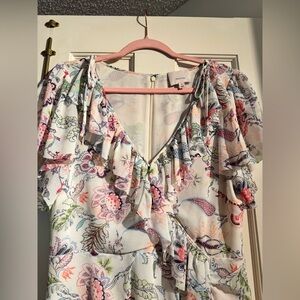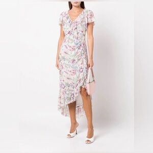 GORGEOUS girly dress from Cinq a Sept - bows, ruffles, asymmetrical fit and beautiful florals against a white dress. VERY lightly worn condition. This dress retails for $428 and is sold out. Offers welcome!