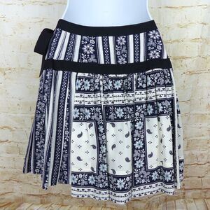 Pre-owned condition, Cinq a Sept Skirt Women 2 Ivory Navy Amory Bandana Floral Pleated Silk Ties FLAW. 100% Silk. Skirt can be worn with the ties loose or in a tied bow. Cool asymmetrical style.