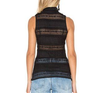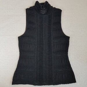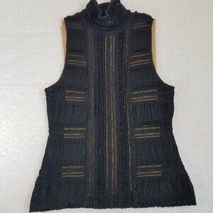 Cinq a Sept Sleeveless Antonia Sheer Turtleneck Top Black LARGE Ruffles Stretch
