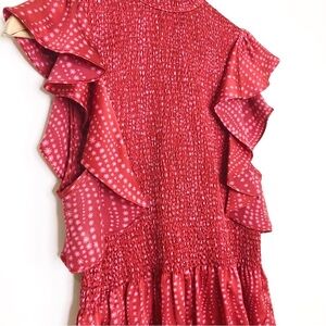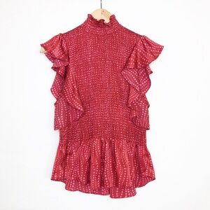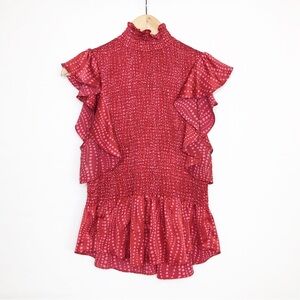 Cinq a’ Sept Smocked ruffled silk top With smocked bodice and zips up at the back