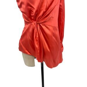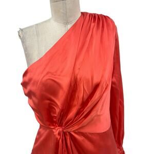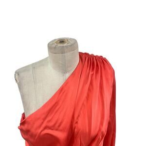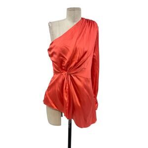 Cinq a Sept Stace One-Shoulder Silk Top in Neon Coral Orange Size Medium