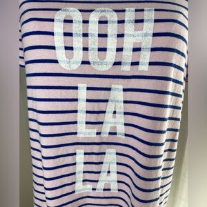 Cinq a Sept Graphic Tee Pink & navy blue horizontal stripes