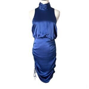 Cinq a Sept Tajia Silk Ruched Mini Dress in Deep Ultramarine Blue Size 8