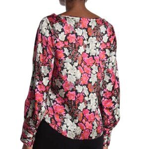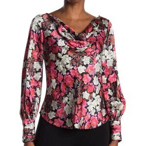 Cinq a Sept "Taylee" lustrous silk blouse featuring a flattering cowl neckline and refined floral print.