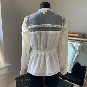 Cinq a Sept Tie-Neck Button-Up V-Neck Silk Peyton Blouse Long Sleeve Sz XS White