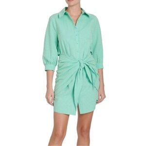 Cinq a Sept Turquoise and Lime Striped Gaby Dress