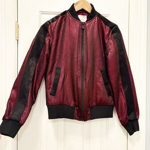 Cinq a Sept Venus Metallic Lame Bomber Jacket Ruby Red Size XS