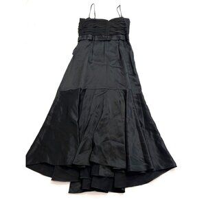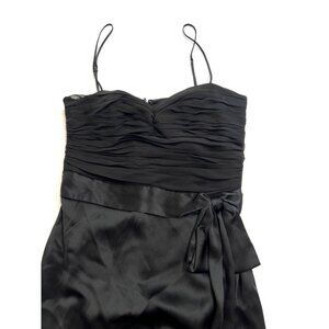 Description from retailer: Charmingly feminine dress with ruched bodice and sweet bow at the waist. Spaghetti straps Sweetheart neckline Sleeveless Concealed back zip Self-ties at waist Tiered flounce hem