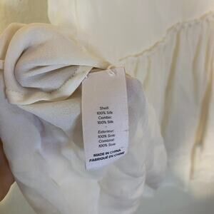 Cinq a Sept White & Black Trim Tie Back Silk Babydoll Peplum Blouse Size Small