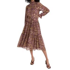 Cinq a Sept dress Amari rose print long sleeve chiffon midi size 2