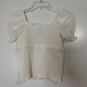 Cinq a Sept ivory white cinched puff sleeve silk blouse top size XS