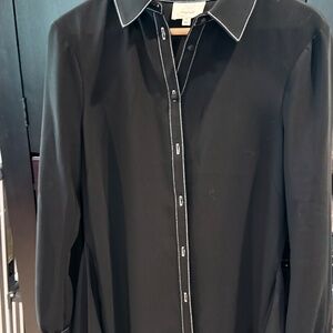 Cinq a sept 5a7; size 8; long dress shirt with bold white stitching, very cute