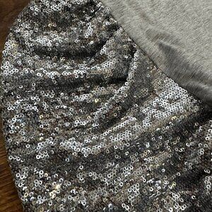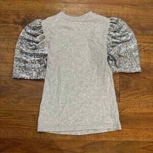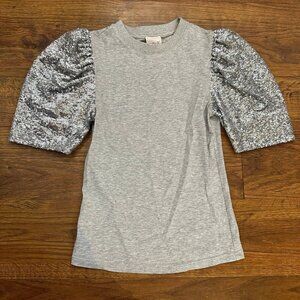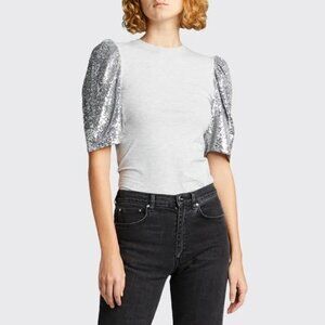 Cinq a Sept Kendra Sequin-Sleeve Top in grey and silver