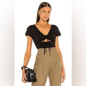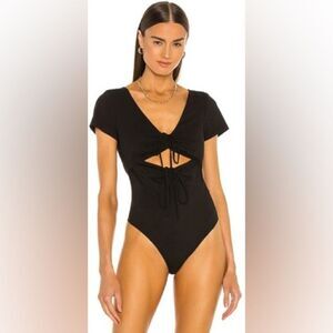Cinq a sept black ruched cut out body suit size large brand new with tags