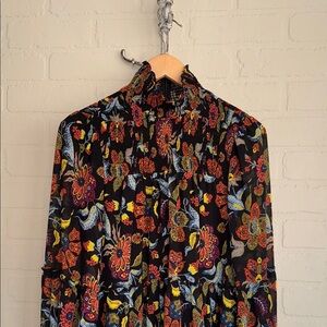 Cinq a sept dress Floral Patterned Long Sleeve smocked mock neck size 2 lined